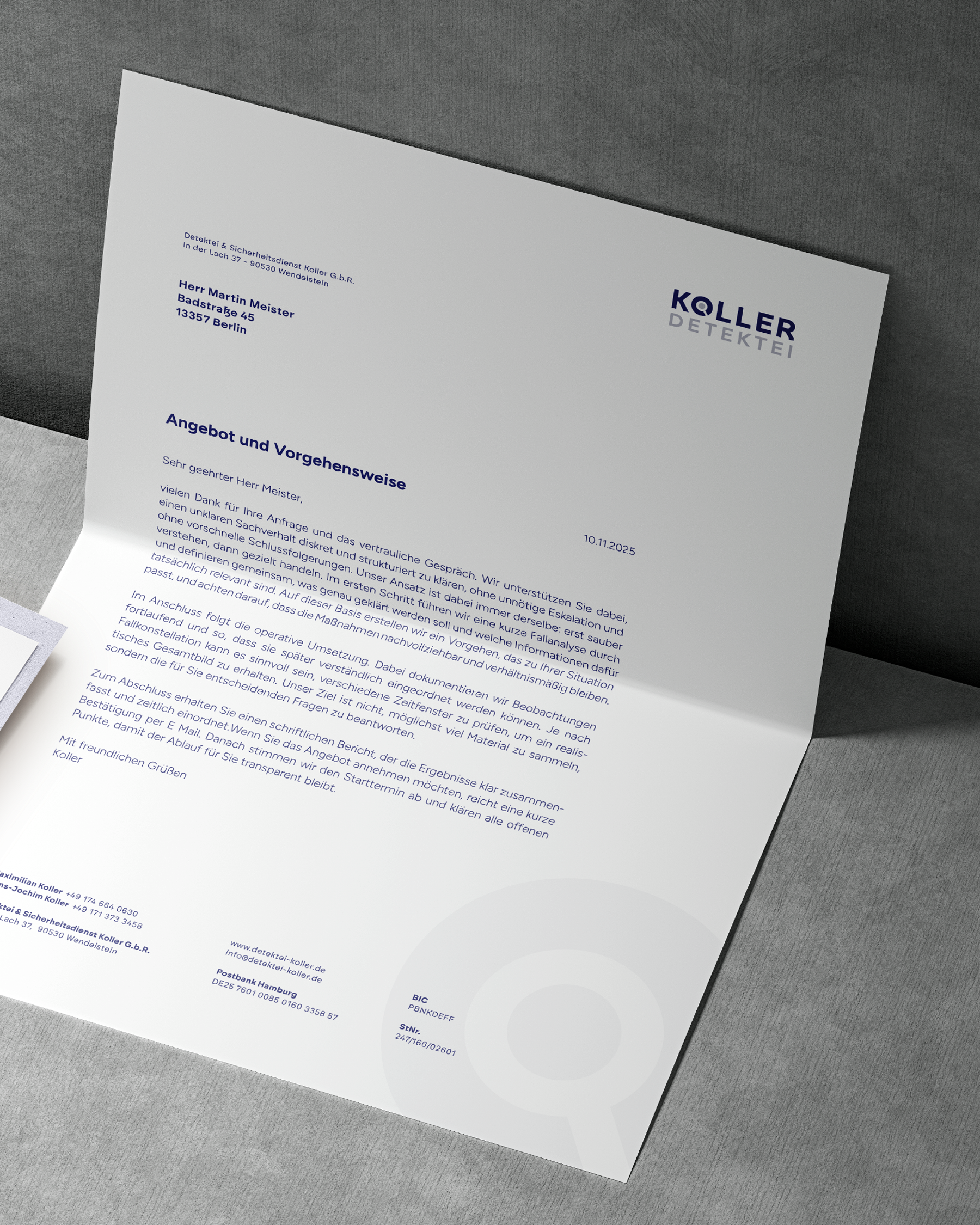 Für die Koller Detektei in Wendelstein wurde ein klares und vertrauenswürdiges